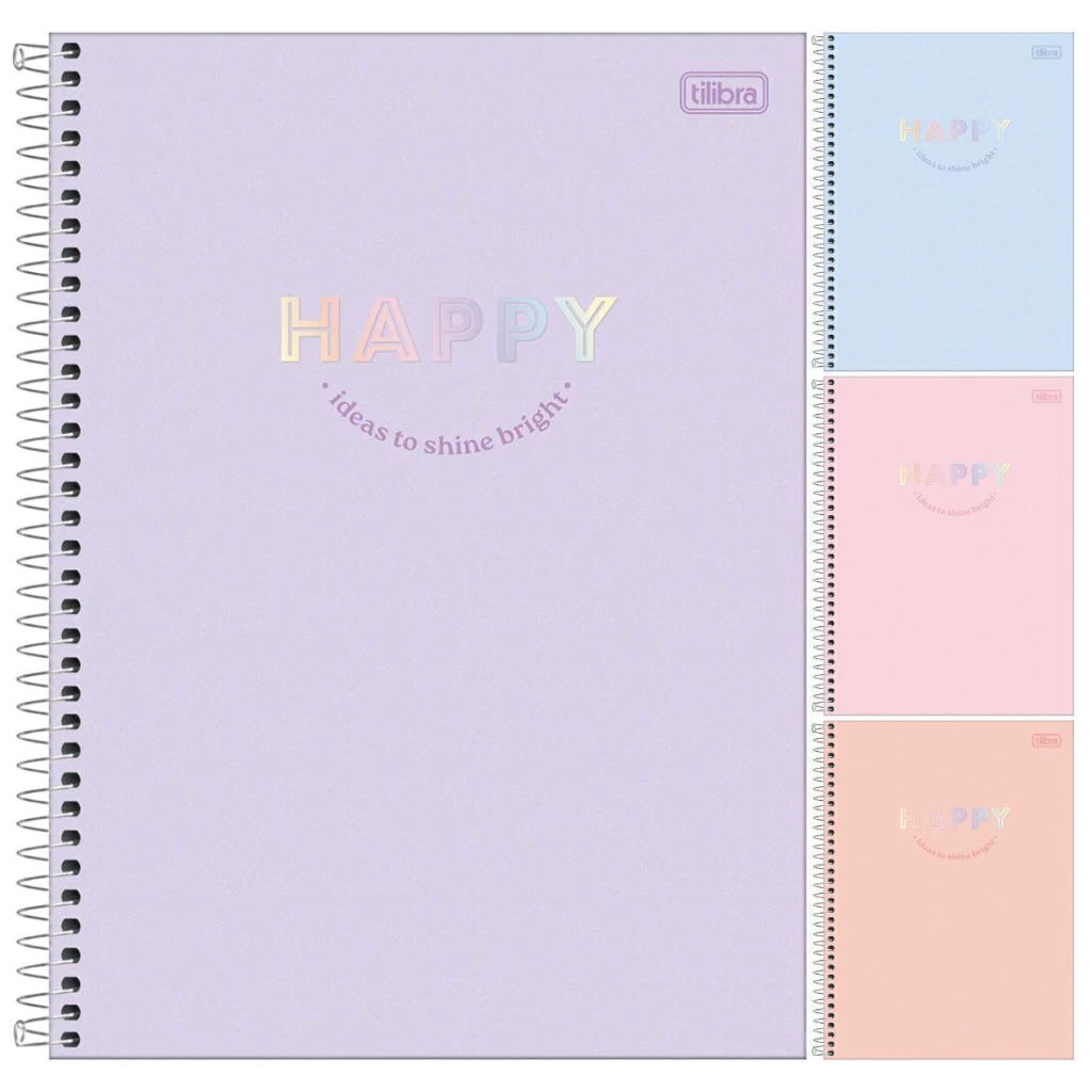O Caderno Espiral Capa Dura Universitário Connect 10 Matérias Happy 160 Folhas da Tilibra é perfeito para você que busca uma opção para organização da rotina de estudos com visual em cores pastel.